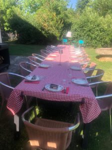 In de tuin is het heerlijk in de schaduw vertoeven onder het genot van een hapje en een drankje. Om 16:30 uur nemen wij ook zelf een borreltje aan de borreltafel, kom je dan ook?